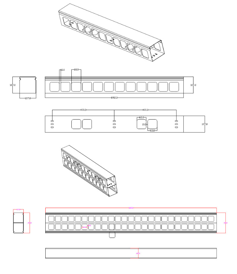 - Rear duct (double side option): 4.2″ x 4.2” (107 x 107 mm)