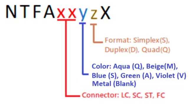 simplex, duplex and quad with colors according to TA-568.3-C.