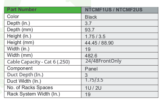 The cable management system provides a neat and efficient means for routing and protecting cables on standard TIA-310 19″ racks. The cable management system keeps your cable organized yet accessible so that moves, adds and changes are easier than ever before. These components are part of an integrated system of Nitrotel International group products including patch panel, racks and patch cords, designed to satisfy your current and future telecommunication closet cabling needs.