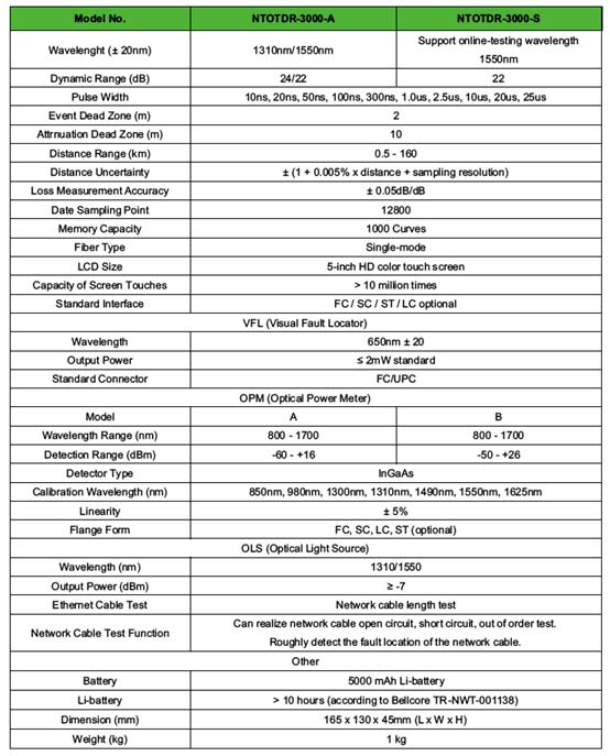 Nitrotel OTDR series 3000 with 5-inch HD capacitive screen boasting a full touch-screen design, it delivers lightning-fast image processing. Large-capacity Li-battery. Streamlining operations with one-button testing, its event mapping feature enables intelligent link analysis. Expandable up to 150GB with a U disk, it offers ample trace storage. Supporting multiple wavelengths. Capable of conducting tests under weak light conditions, it maintains versatility in various settings.