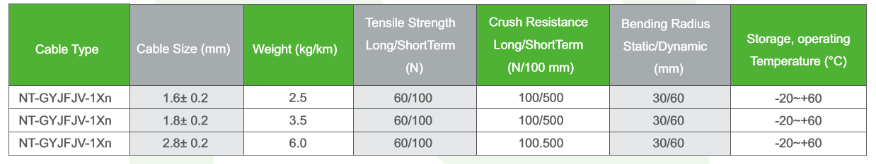 The Nitrotel simplex cable (GJFJV) uses single 900μm or 600μm tight buffered fiber as optical transmission medium, covered with aramid yarn as strength member, then extruded with a PVC sheath. Other sheath materials, like LSZH and TPU, are available on request.