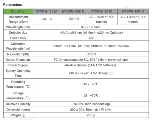 Universal Interface: Utilizes a 2.5mm universal interface based on FC standard, making it convenient to use and compatible with various connector types. Power Supply: Operates on 5 AA batteries and can run continuously for up to 200 hours.