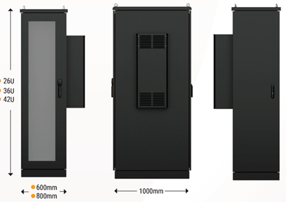 Nitrotel Uranus series is an integrated product that contains cooling, energy/ups, fire extinguisher, access control and monitoring requirements in just one cabinet in order to meet the it infrastructure needs of the industrial facilities, offices, branches and dealer locations. Options of 450 up to 3700 w; 26, 36 and 42U and 600 or 800mm of width. Side or top mounting colling unit. RAL 7035 (light gray) or RAL 9005 (black).